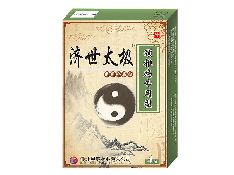 - 產品介紹【產品名稱】濟世太極頸椎病專用型【產品備案憑證編號】鄂漢械備20170073號【型號規格】4貼/盒、2貼/袋,(80±8mm)×(90±8mm)【適用人[查看詳情]